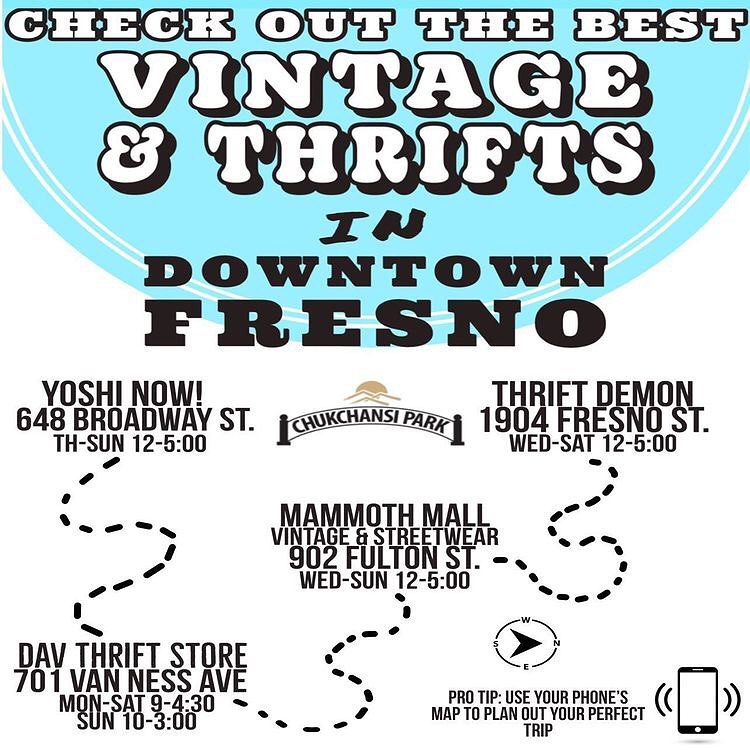 Thrifting is a form of homage to the designs, styles and trends of past decades. With even more young people showing interest in thrifting, it is exciting to see how the thrifting scene in Fresno will change. No matter how you thrift, even with a handy map designed by Bad Kids Club, Downtown Fresno is the place to get lost in the shops.