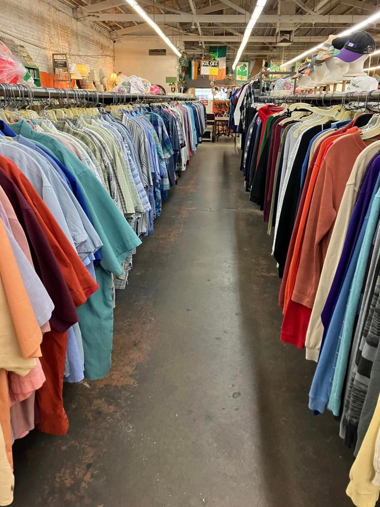This thrift store seems small from the outside but feels huge from the inside. At Emerald, shelves of miscellaneous ceramics greet you at the door. Beyond that, there are long rows filled to the brim with clothing. This is the place to flex those thrifting skills since there is a ton to look through.